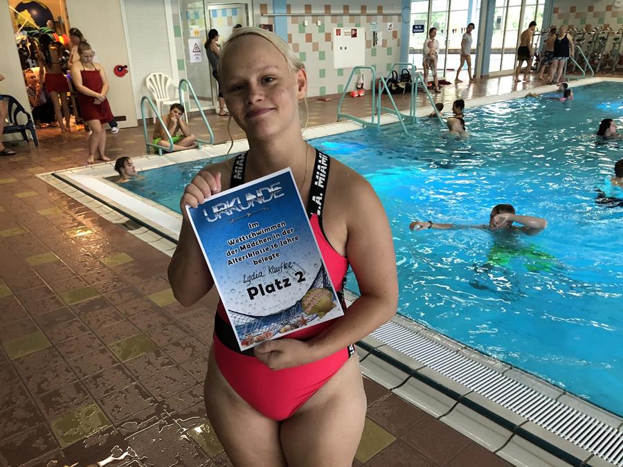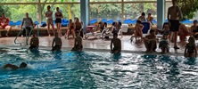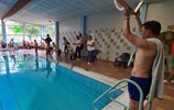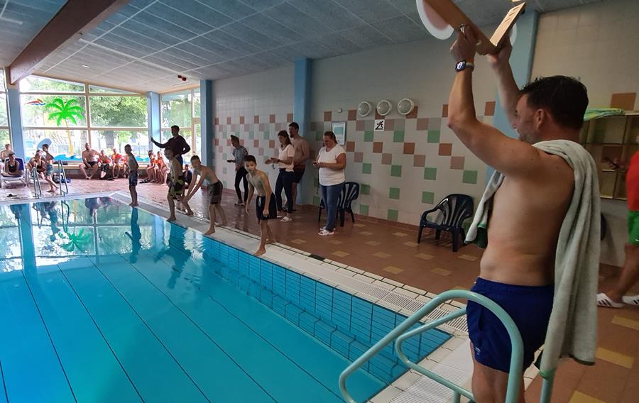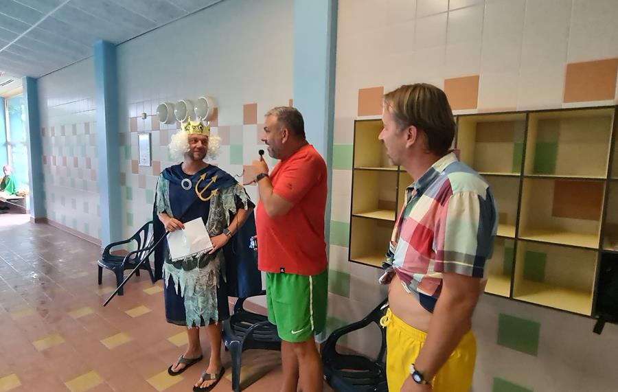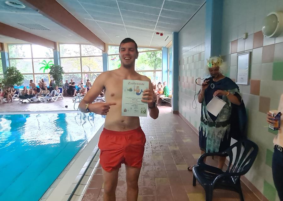 Bei ausgelassener Stimmung traten wieder unsere schnellsten Wasserratten in den verschiedenen Altersklassen beim Wettschwimmen gegeneinander an. Auch unser Neptun ließ es sich nicht nehmen vorbeizuschauen um Groß und Klein zu taufen. Nachdem sich alle mit Currywurst oder Pommes gestärkt hatten wurden alle mutigen Wettschwimmer mit einer Urkunde und einem kleinen Preis belohnt.